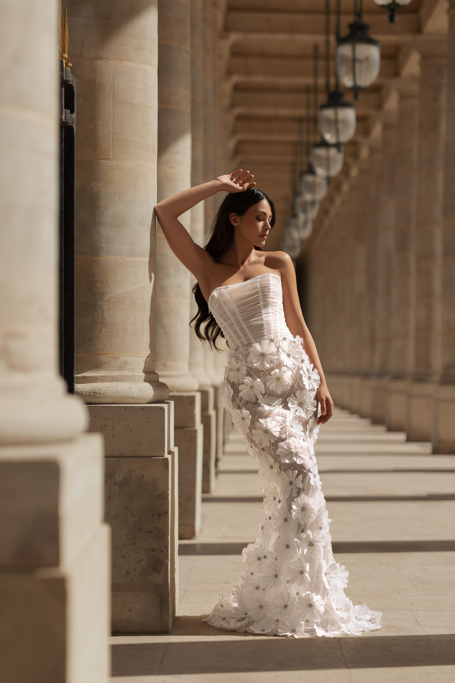 The soft tulle and lace echo the delicacy of petals, while the intricate embroidery reflects the quiet, powerful details you only notice when you stop and really look at the world around you. Each piece carries the spirit of nature, of gardens in full bloom, and the quiet strength in things that grow.